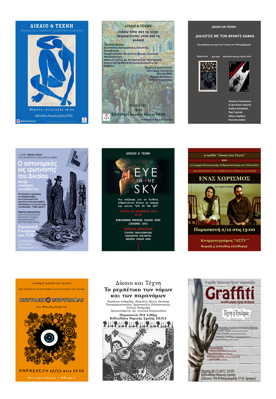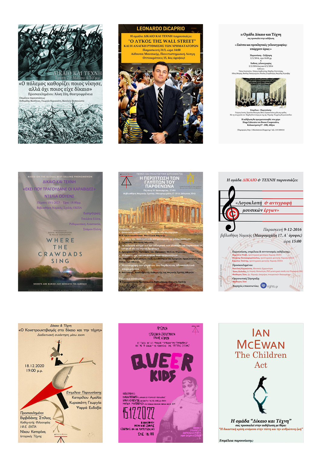 Αφίσες από εκδηλώσεις της Ομάδας Δίκαιο και Τέχνη