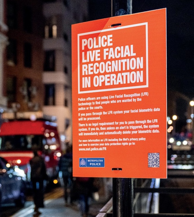 Ενημερωτική πινακίδα για χρήση ΤΑΠ σε δημόσιους χώρους στο Ηνωμένο Βασίλειο: «Οι αστυνομικοί χρησιμοποιούν τεχνολογία Ζωντανής Αναγνώρισης Προσώπου (ΖΑΠ) για να εντοπίζουν άτομα που καταζητούνται από την αστυνομία ή τα δικαστήρια. Εάν περάσετε από το σύστημα ΖΑΠ, τα βιομετρικά δεδομένα του προσώπου σας θα υποβληθούν σε επεξεργασία. Δεν υπάρχει νομική υποχρέωση να περάσετε από το σύστημα ΖΑΠ. Εάν το κάνετε, εκτός εάν ενεργοποιηθεί κάποιος συναγερμός, το σύστημα θα διαγράψει αμέσως και αυτόματα τα βιομετρικά σας δεδομένα. Για περισσότερες πληροφορίες σχετικά με το ΖΑΠ, συμπεριλαμβανομένης της πολιτικής απορρήτου της Met και του τρόπου άσκησης των δικαιωμάτων σας για την προστασία των δεδομένων, επισκεφθείτε τη διεύθυνση: www.met.police.uk./FR».[57]